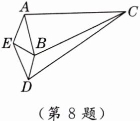 8. 如图,线段 AB,DE 的垂直平分线交于点 C,且 $ \angle ABC = \angle EDC = 78^{\circ} $,$ \angle AEB = 98^{\circ} $,则 $ \angle EBD $ 的度数为(