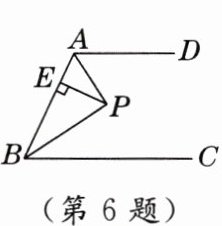 6. 如图,$ AD // BC $,$ \angle ABC $ 的平分线 BP 与 $ \angle BAD $ 的平分线 AP 相交于点 P,作 $ PE \perp AB $ 于点 E. 若 $ PE = 2 $,则两平行线 AD 与 BC 间的距离为( )