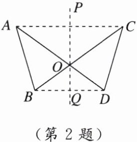 2. 如图,AD 与 BC 交于点 O,△ABO 和△CDO 关于直线 PQ 对称,点 A,B 的对称点分别是点 C,D. 下列不一定正确的是(