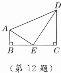 12. 如图,$ AB \perp BC $,$ DC \perp BC $,垂足分别为 B,C,$ \angle BAD $ 和 $ \angle ADC $ 的平分线恰好相交于 BC 边上的 E 点,$ AD = 9 $,$ BE = 4 $,则四边形 AB-CD 的面积为