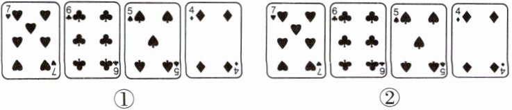 10. 如图①所示,魔术师把 4 张扑克牌放在桌子上,然后蒙住眼睛,请一位观众上台,把其中 1 张扑克牌旋转$180^{\circ}$.魔术师睁开眼睛后,看到 4 张扑克牌如图②所示,则被旋转的扑克牌上的数字是
