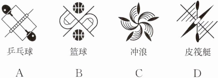 1. 真实情境题 体育赛事 中国代表队在第 33 届巴黎奥运会中取得了 40 金 27 银 24 铜的傲人成绩,以下奥运比赛项目图标中,$\underline{不是}$中心对称图形的是 (