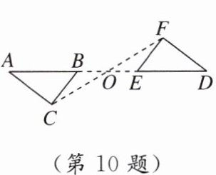 10. 如图,$\triangle ABC与\triangle DEF$关于点O成中心对称,且AB与DE在一条直线上.若$AO = 7$,$AB = 5$,则$OE= $