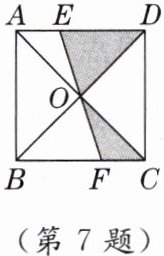 7. 如图,边长为2的正方形ABCD的对角线相交于点O,过点O的直线分别交边AD,BC于E,F两点,则阴影部分的面积是(