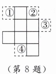 8. 如图,所有的小正方形都全等,在图中的①②③④某一位置放入一个大小相同的小正方形后,使它与原来的7个小正方形组成的图形是中心对称图形,这个位置是(