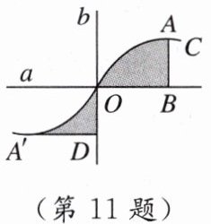 11. 如图,直线a,b垂直相交于点O,曲线C关于点O成中心对称,点A的对应点是点$A{}^{\prime }$,$AB\perp a$于点B,$A{}^{\prime }D\perp b$于点D.若$OB = 3$,$OD = 2$,则阴影部分的面积之和为