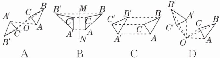 2. 下列各组图形中,$\triangle A{}^{\prime }B{}^{\prime }C{}^{\prime }与\triangle ABC$成中心对称的是(