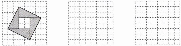11. 下图是“弦图”,请将“弦图”中的四个直角三角形通过你所学过的图形变换,在以下方格纸中设计另两个不同的图案.