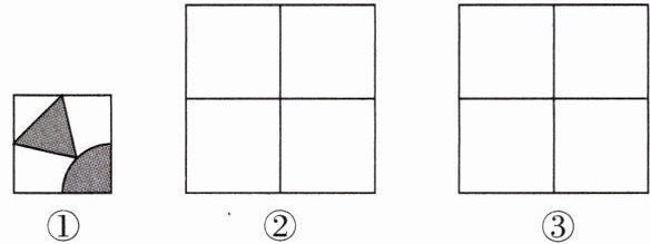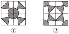 12. 图①是利用正方形各边中点和弧的中点设计的正方形瓷砖图案,用四块如图①所示的正方形瓷砖拼成一个新的正方形,使拼成的图案既是轴对称图形,又是中心对称图形. 请你在图②和图③中各画一种拼法.