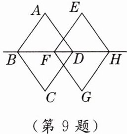 9. 如图,已知四边形 ABCD 与四边形 EFGH 关于直线 BD 上的某个点成中心对称,则点 B 的对称点是(