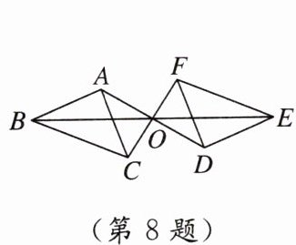 8. [2025 保定校级模拟]如图,△ABC 与△DEF 关于点 O 成中心对称,连接 AD,BE,CF. 下列结论中正确的有(