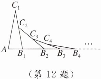 12. 如图,在$△AB_1C_1$中$,AC_1= B_1C_1,∠C_1= 20°,$在$B_1C_1$上取一点$C_2,$延长$AB_1$到点$B_2,$使得$B_1B_2= B_1C_2;$在$B_2C_2$上取一点$C_3,$延长$AB_2$到$B_3,$使得$B_2B_3= B_2C_3;$在$B_3C_3$上取一点$C_4,$延长$AB_3$到点$B_4,$使得$B_3B_4= B_3C_4;$…按此操作进行下去,∠AB_{2025}C_{2025}的度数为