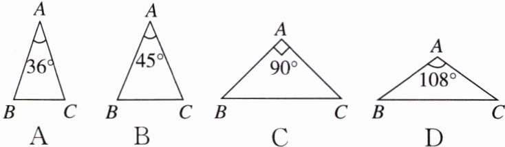 8. 在下列三角形中,若$AB = AC$,则不能被一条直线分成两个小等腰三角形的是(