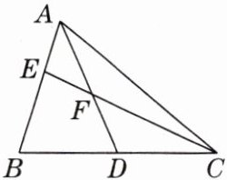 5. 如图,在 $ \triangle ABC $ 中,$ AD $ 为中线,点 $ E $ 为 $ AB $ 上一点,$ AD $,$ CE $ 交于点 $ F $,且 $ AE = EF $。求证:$ AB = CF $。