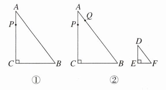 (3)如图②,在$Rt\triangle DEF$中,$\angle E= 90^{\circ}$,$DE= 4cm$,$DF= 5cm$,$\angle D= \angle A$.在$AB边上有一动点Q$,与点$P同时从点A$出发,沿边$AB\rightarrow BC\rightarrow CA$运动,回到点$A$停止.当$\triangle APQ\cong\triangle DEF$时,求点$Q$的运动速度.