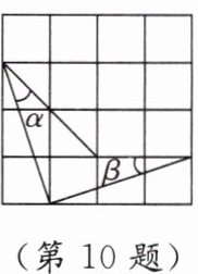 10. 如图,图形的各个顶点都在$4×4$的小正方形网格线的交点上,则$\angle\alpha+\angle\beta$的度数为