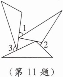 11. 三个全等三角形按如图所示摆放,则$\angle1+\angle2+\angle3$的度数为