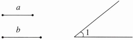6. 如图,已知线段$a$,$b$,$\angle 1$,用直尺和圆规求作$\triangle ABC$,使得$\triangle ABC的两边分别为a$,$b$,一内角等于$\angle 1$。(画出其中一种即可)