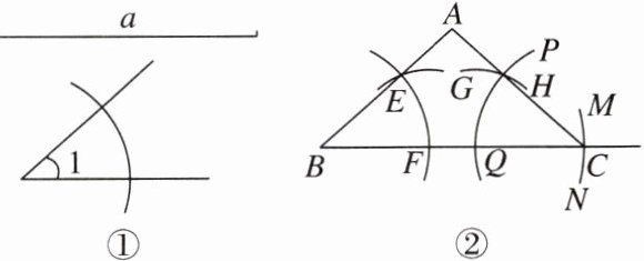 2. [2025石家庄栾城区月考]如图①,已知线段$a$,$\angle 1$,求作$\triangle ABC$,使$BC = a$,$\angle ABC = \angle BCA = \angle 1$,张蕾的作法如图②所示,则下列说法中一定正确的是(