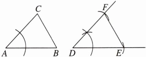 1. 如图,已知$\triangle ABC$,用尺规作图的方法作出了$\triangle ABC\cong\triangle DEF$,请根据作图痕迹判断$\triangle ABC\cong\triangle DEF$的理论依据是(