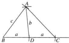 4. 如图,已知线段$a$,$b$,$c$。求作$\triangle ABC$,使$BC = 2a$,$AB = c$,$BC边上的中线AD = b$,不写作法,保留作图痕迹。