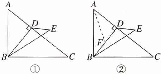 12. 添加辅助线是很多同学感觉比较困难的事情。如图①,在$Rt\triangle ABC$中,$\angle ABC = 90^{\circ}$,$BD$是高,$E是\triangle ABC$外一点,$BE = BA$,$\angle E = \angle C$,若$DE = \frac{2}{5}BD$,$AD = 16$,$BD = 20$,求$\triangle BDE$的面积,同学们可以先思考一下…,小颖思考后认为可以这样添加辅助线:在$BD上截取BF = DE$,连接$AF$(如图②)。根据小颖的提示,聪明的你可以求得: