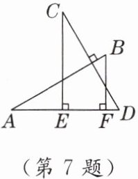 7. 荣德原创题 如图,$AB\perp CD$,且$AB = CD$,$E$,$F是AD$上两点,$CE\perp AD$,$BF\perp AD$。若$CE = a$,$BF = b$,$EF = c$,则$AD$的长为(