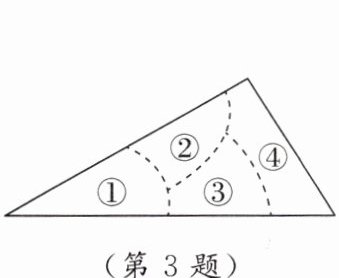 3. 如图,一块三角形的玻璃打碎成 4 块,现要到玻璃店去配一块完全一样的玻璃,小荣说最简单的办法是只需要带④去,小荣作出这判断的依据是(