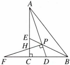 16. (14 分)如图,$Rt\triangle ACB$中,$\angle ACB = 90^{\circ}$,$\triangle ABC的角平分线AD$,$BE相交于点P$,过$P作PF\perp AD交BC的延长线于点F$,交$AC于点H$。