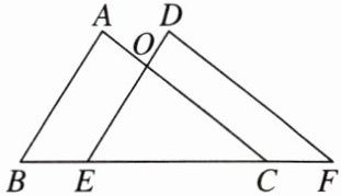 14. (12 分)如图,点$B$,$E$,$C$,$F$在同一条直线上,$AC与DE相交于点O$,$AC// DF$,$AB// DE$,$AB = DE$。