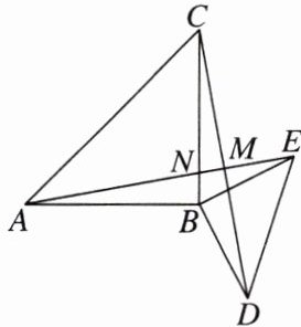5. 如图,$ \triangle ABC $ 和 $ \triangle EBD $ 中,$ \angle ABC = \angle DBE = 90^\circ $,$ AB = CB $,$ BE = BD $,连接 $ AE $,$ CD $,$ AE $ 与 $ CD $ 交于点 $ M $,与 $ BC $ 交于点 $ N $.