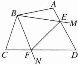 6. 新考法 补短法 如图,在四边形 $ ABCD $ 中,$ BA = BC $,$ \angle BAD + \angle BCD = 180^\circ $,$ \angle ABC = 2\angle MBN $,$ \angle MBN $ 的两边分别交 $ AD $,$ DC $ 于点 $ E $,$ F $.探究图中线段 $ AE $,$ CF $,$ EF $ 之间的数量关系.