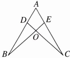 4. 如图,点 $ D $,$ E $ 分别在线段 $ AB $,$ AC $ 上,$ CD $ 与 $ BE $ 相交于 $ O $ 点,已知 $ AB = AC $,现添加以下的哪个条件仍不能判定 $ \triangle ABE \cong \triangle ACD $?(