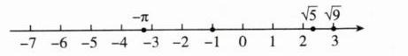 ∴2<√5<3,结合-4<-π<-3,√9=3,可知√9,-1标在数轴上如图所示: