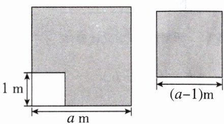 14. 情境题 生活应用 涪陵是举世闻名的“榨菜之乡”,今年榨菜更是喜获丰收。为了选育更好的榨菜品种,农民伯伯们开始自己建试验田,如图,王大伯家的试验田是边长为 a m(a>1)的正方形去掉一个边长为 1 m 的正方形蓄水池后余下的部分,李大爷家试验田是边长为$(a-1)m$的正方形,两块试验田的榨菜最后都分别收获了 1000 kg。
