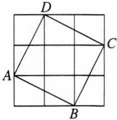 8. 如图,在 $3×3$ 的方格中(每个小正方形的边长为 1),四边形 $ABCD$ 是正方形,利用面积的关系探求正方形 $ABCD$ 的边长是______.