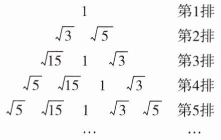 17. 将$1$,$\sqrt{3}$,$\sqrt{5}$,$\sqrt{15}$按如下方式排列,若规定$(m, n)表示第m排从左向右第n$个数,则$(4, 4)与(10, 2)$表示的两个数之积是