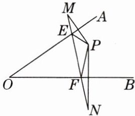 13. 如图,点P在∠AOB的内部,点M,N分别是点P关于直线OA,OB的对称点,线段MN分别交OA,OB于点E,F.