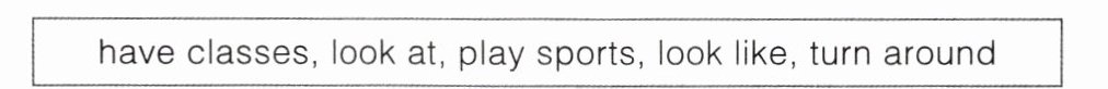 6. Look at 7. has classes 8. Turn around 9. plays sports 10. looks like