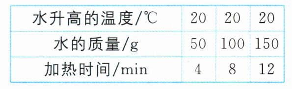 3. 小勇在做“探究水吸热多少与水的质量是否有关”的实验中,选择初温相同的水做实验,记录的实验数据如表所示。根据表中数据可得出“水吸热多少与水的质量有关”的结论,则从表中提取的能得出该结论的信息是(
