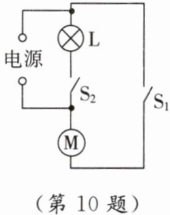 10. 如图是电冰箱的简化电路图,图中 $ M $ 是电冰箱压缩机内的电动机,$ L $ 是电冰箱内的照明灯。下列判断正确的是(