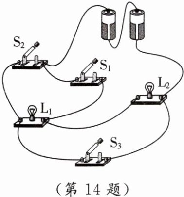 14. [2025·淮北期中] 如图所示的电路,要使灯泡 $ L_{1}、L_{2} $ 并联,应闭合开关