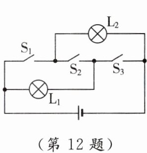 S₁、S₃;S₂ [点拨]当开关S₁、S₃闭合,S₂断开时,小灯泡L₁、L₂分别接在电源两极之间,它们是并联的。当只有开关S₂闭合时,电流只有一条路径,且依次流过两个小灯泡,小灯泡L₁、L₂串联。