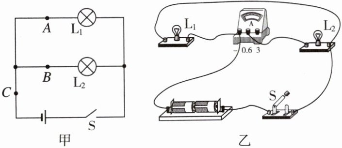 (1)由图乙可知,两灯泡并联,电流表在L₂所在支路,因此测量的是通过L₂的电流。
