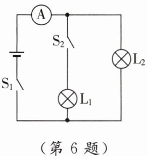 6. [2025·哈尔滨月考] 在如图所示的电路中,电源电压保持不变,闭合开关 $S_{1}$、$S_{2}$,两灯都发光,当把开关 $S_{2}$ 断开时,灯泡 $L_{2}$ 的亮度及电流表示数变化的情况正确的是(