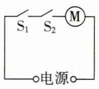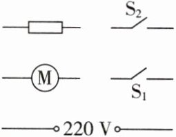 11. 电吹风的主要工作元件是发热丝(—⧠—)、电风扇(—Ⓜ—)及开关。闭合开关 $ S_1 $,电吹风吹出冷风;若同时还闭合 $ S_2 $,吹出热风;若只闭合 $ S_2 $,不吹风也不发热。请根据要求用笔画线代替导线,完成电路设计。
