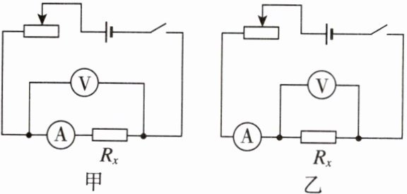 (填“$A$”或“$B$”)端。(2)闭合开关,当滑片移动到某位置时,电压表、电流表示数如图乙所示,则未知电阻$R_{x}$为