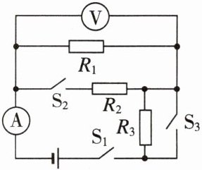 A;若同时闭合开关$S_{1}$、$S_{2}$、$S_{3}$,则电压表的示数为6
