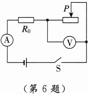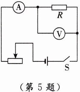 5. [2024·临沂]如图所示电路的电源电压为$9V$,电流表使用$0\sim0.6A$量程,电压表使用$0\sim3V$量程,阻值为$10\Omega的定值电阻允许通过的最大电流为0.5A$。为保证电路中各元件安全工作,滑动变阻器的最大阻值应大于(