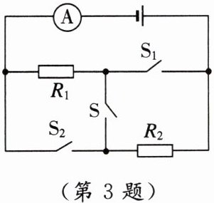 $A$;不能同时闭合开关$S$、$S_{1}$、$S_{2}$,否则会造成的现象是电源发生短路,烧坏电流表和电源
